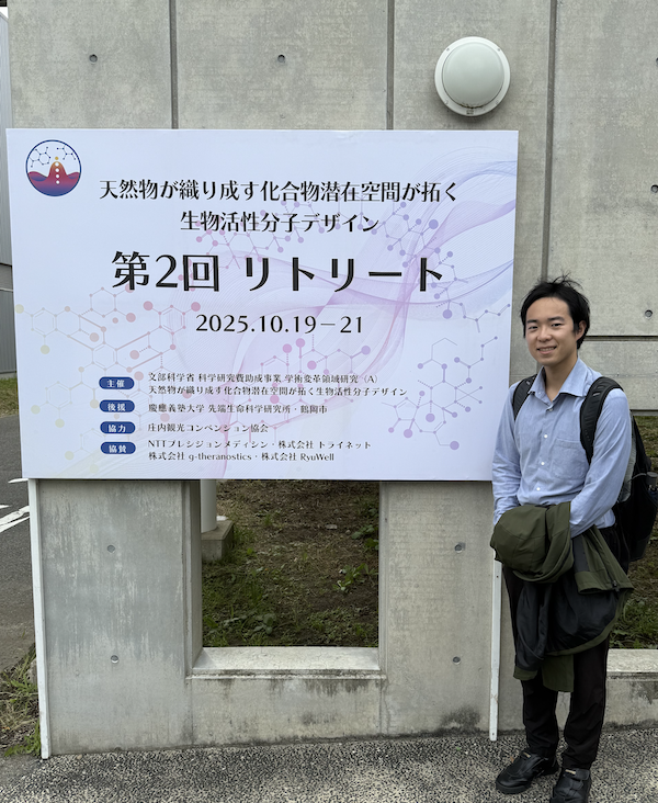 この度、2025年10月19日から21日に山形県鶴岡市で開催された学術変革領域 (A) 「天然物が織り成す化合物潜在空間が拓く生物活性分子デザイン」 (通称潜在空間分子設計) の第2回リトリートに参加してきたので、本稿ではその感想を共有する。本領域は、清水教授の研究計画が採択されている科研費の研究領域であり、この領域に関する会議等に参加させていただいたのは今回が初めてである。